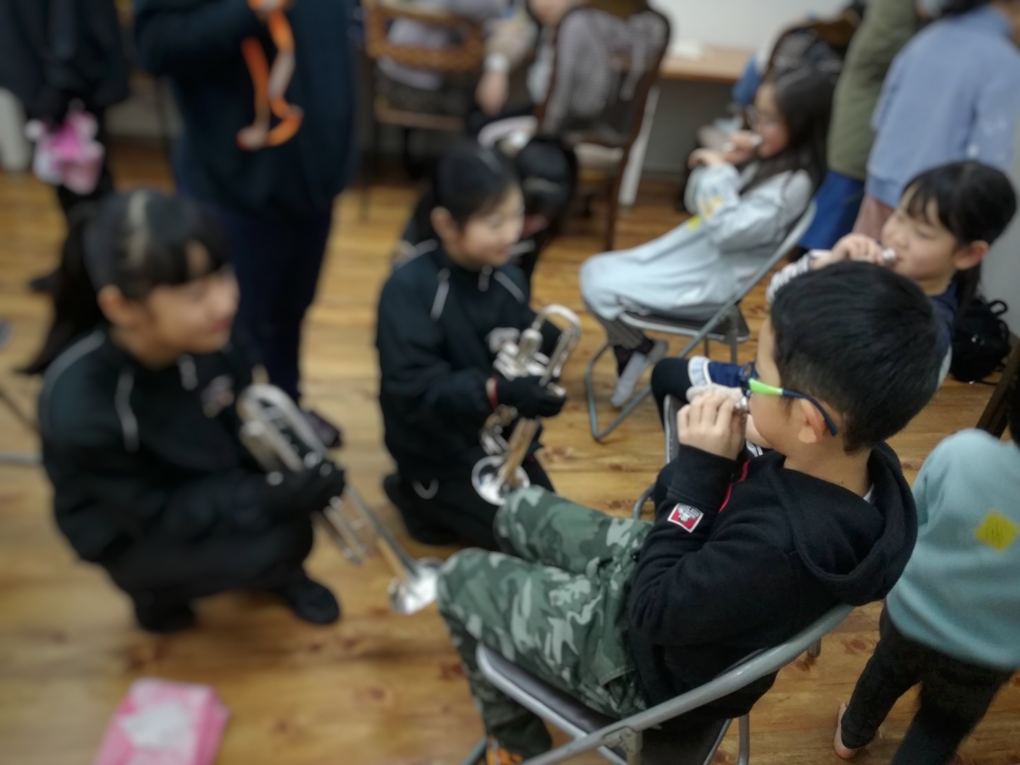 演奏の後は、楽器体験コーナーに参加する橿ママキッズ達。