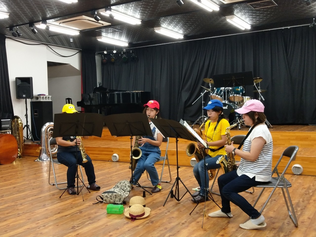 全員が揃うのは今日が始めて。特に集まって練習しなかった、、とは思えない演奏でした!頭に何やら付いてるぞ笑 まっくろくろすけ?!