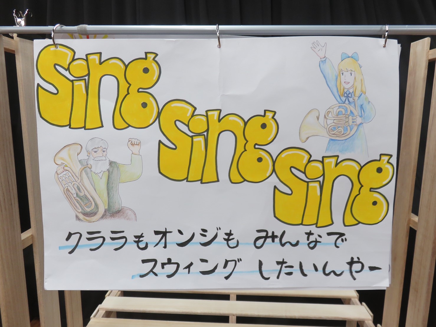 会場設営の傍ら、各パート記念撮影大会〜!手作りパネルのクオリティー高っ!もう始まる前からすでに楽しすぎるんですけど^ - ^