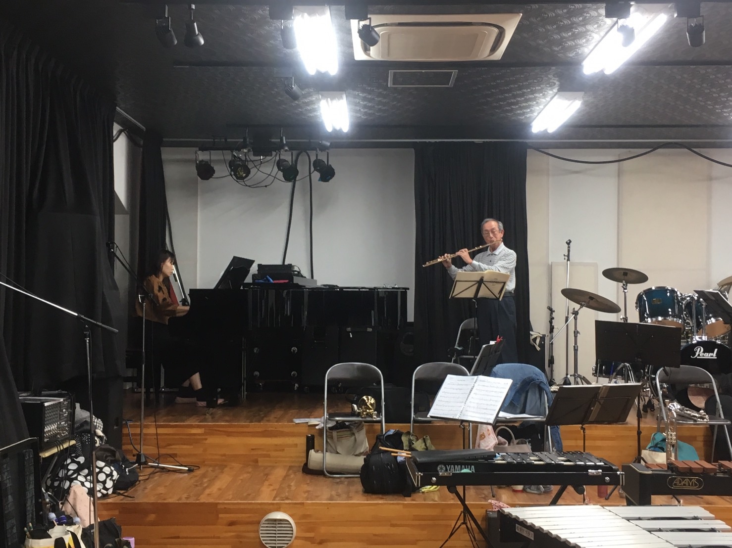 先生のフルートとピアノ伴奏での演奏は、まるで本番かのように団員が集まっていました。