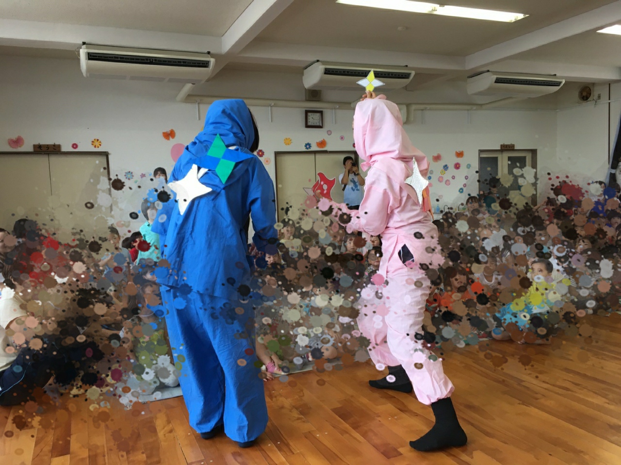 体育館という事で小さい演出じゃ見えにくいからと、【おつかいありさん】や【やぎさんゆうびん】が大きくバージョンアップされていてビックリ⁉︎なんでもあっという間に作ってしまう!という橿ママあるあるです。