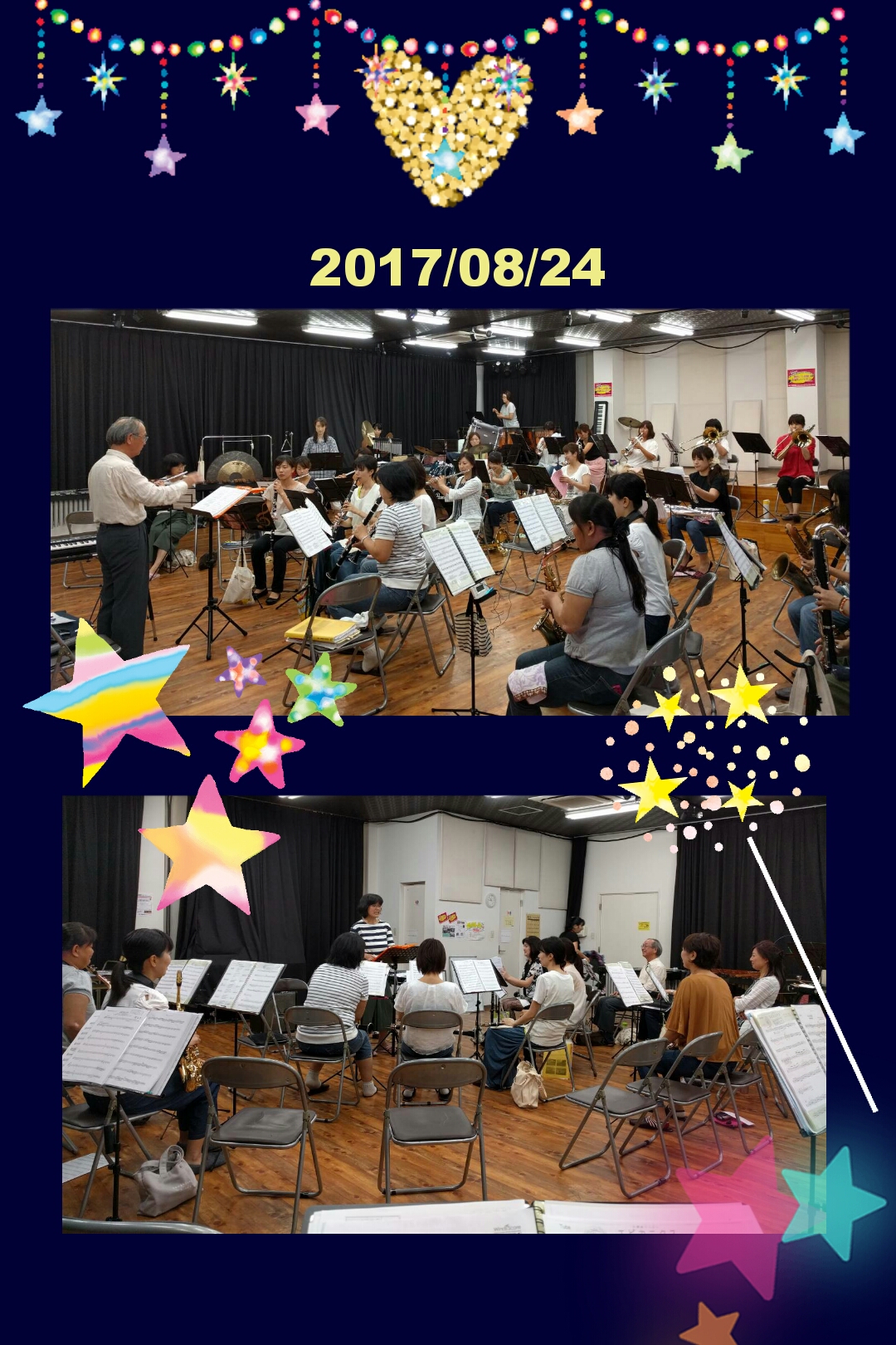H先生がお休みの中ですが、セク練の内容をフィードバックさせるという目的意識を持って、団員のKさん指揮による合奏です。